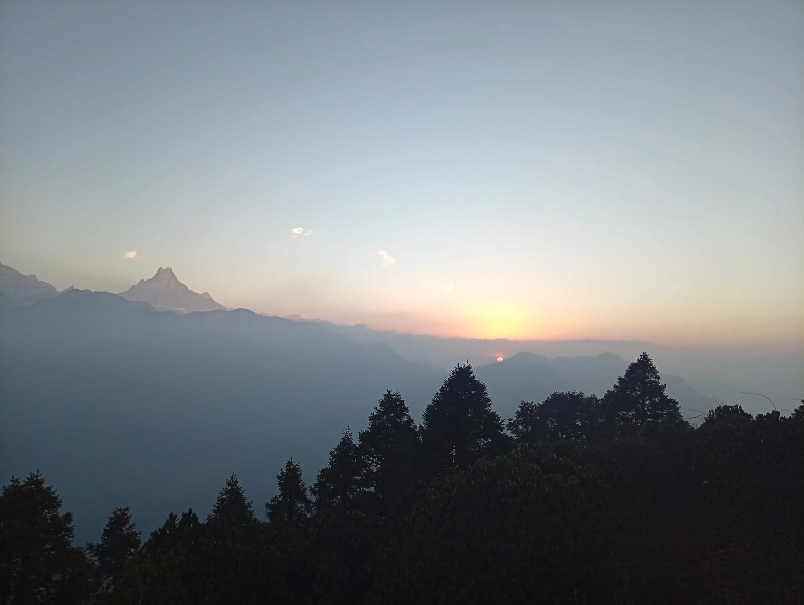 At low altitude, Poon Hill, at an elevation of 3,210 m above sea level, is the primary Annapurna viewpoint. Near Ghorepani village, an early morning hike to see the sunrise over the Annapurna Himalayas is one of the most popular tourist activities. In the heart of the Annapurna mountain range, Poon Hill offers a complete 360-degree view of several snow-capped peaks such as Dhaulagiri, Machhapuchhre (Fishtail), and Hiunchuli, including Annapurna South.