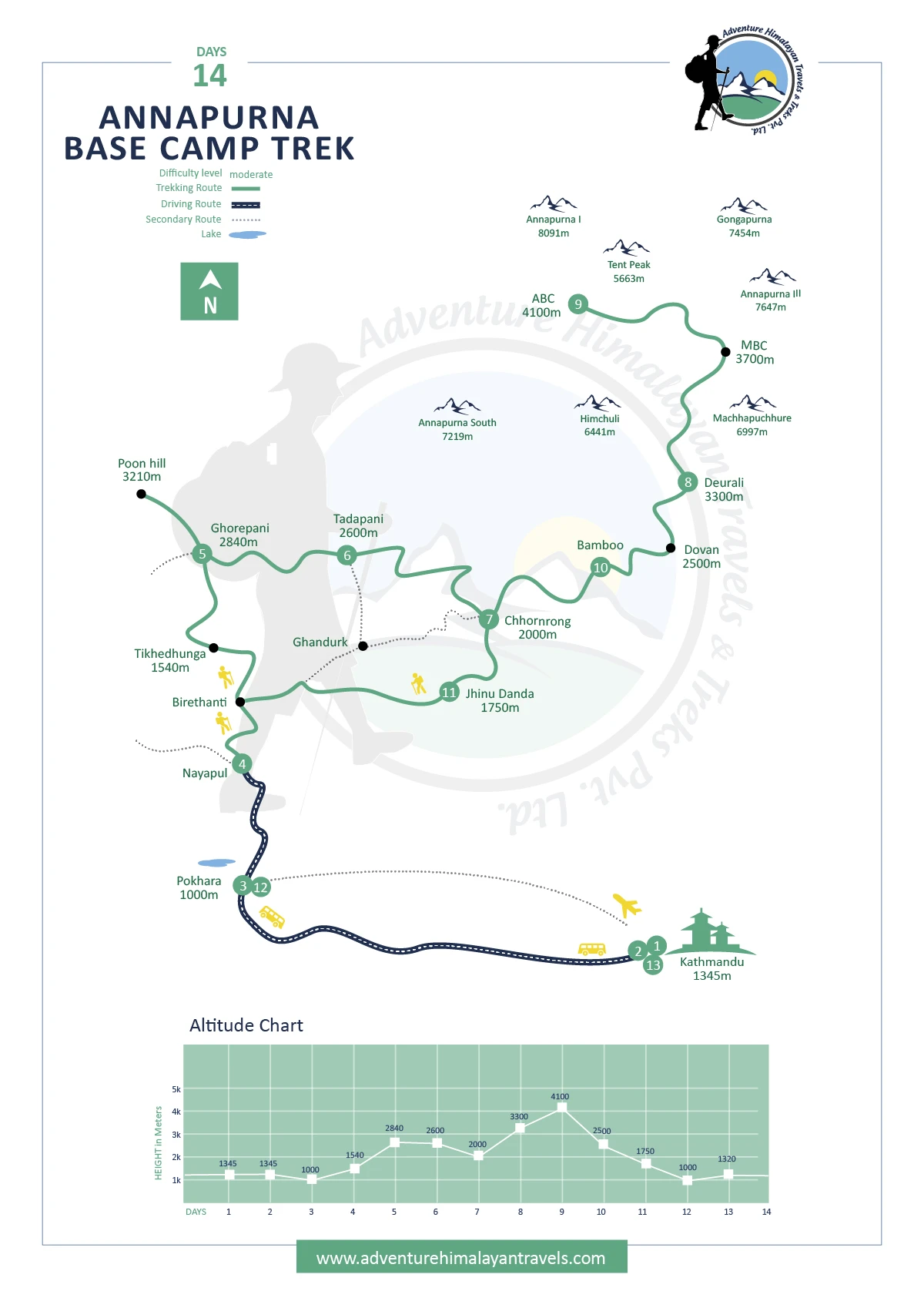 As one of the most reputed travel and trekking organizers based in the heart of Kathmandu, Nepal, in Thamel, Adventure Himalayan Travels and Treks is a completely travel and trekking-friendly tour operator who is happy to help you make the bang for each buck you spend by offering the best budget 14-day package to go on the Annapurna Base Camp Voyage on a special group discount. Which is: