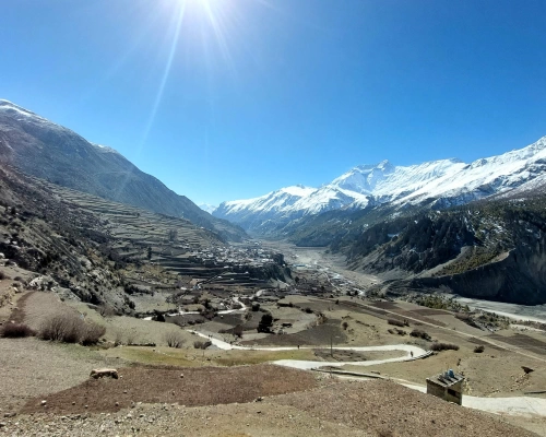 Situated at the bank of the Kali Gandaki River in the Mustang district of Nepal, both Jomsom and Kagbeni are scenic, quaint villages where Jomsom functions as the administrative center of the Mustang region, often bustling, while Kagbeni serves as the gateway to enter the Upper Mustang that you will mountain bike through quite earlier days during the Annapurna Circuit Half mountain biking journey.