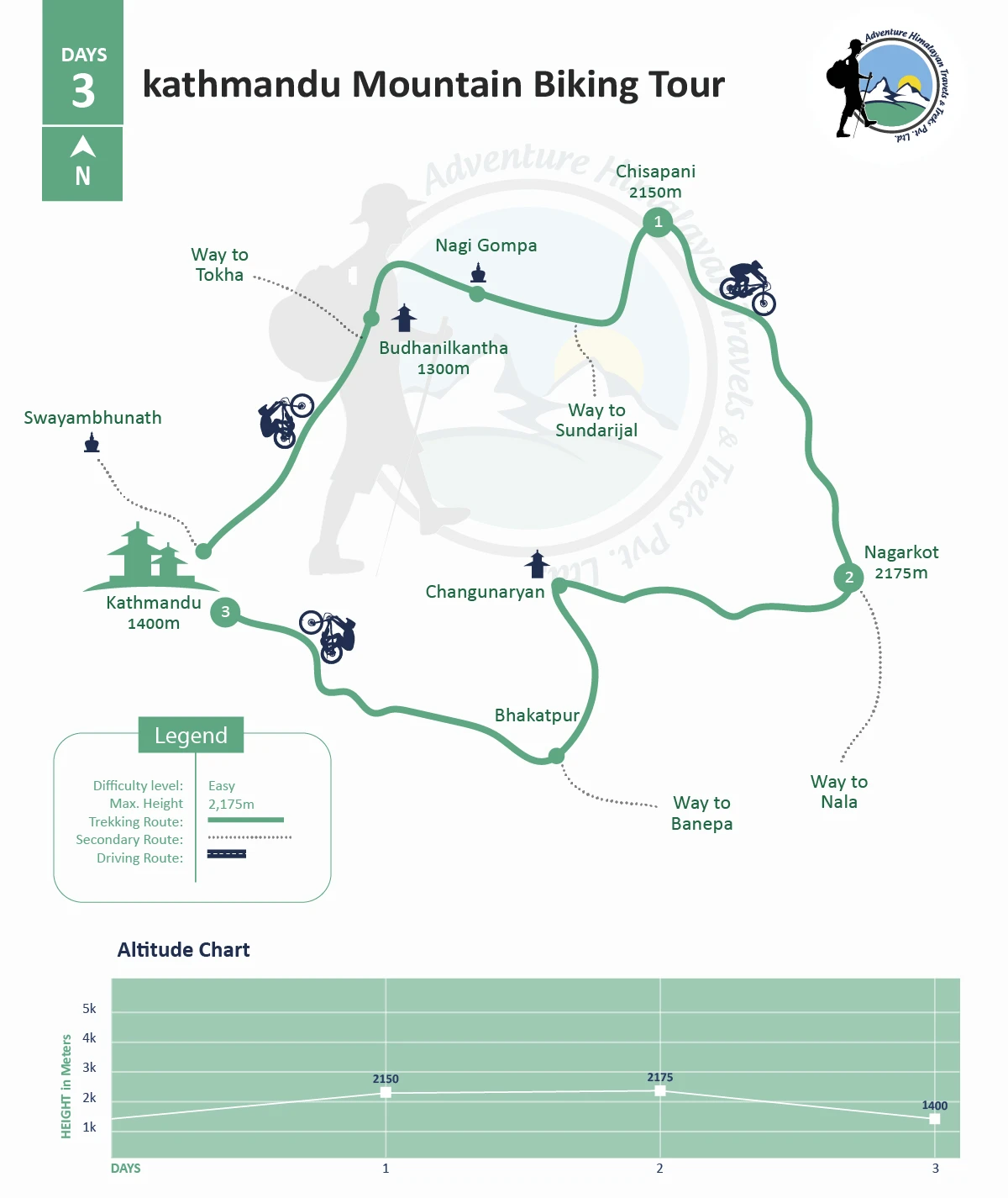 Early in the morning, we will have a sunrise view from Nagarkot from Viewtower. Then after breakfast, we will start riding towards the Chyangunarayan Temple which is a Hindu temple then back to Kathmandu, where the tour ends.