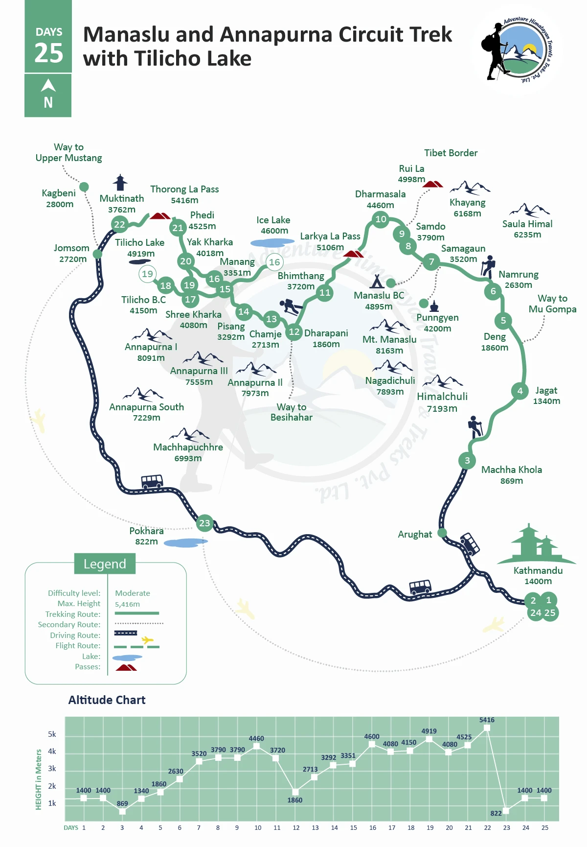 Manaslu and Annapurna Circuit Trek with Tilicho Lake 25 Days Itinerary and Cost for 2025 and 2026